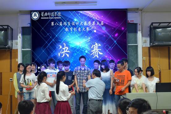 2015年5月27日晚七点,由教育科学与技术学院主办的遗爱网第八届网页设计大赛暨第五届数字创意大赛决赛在主教B02隆重举行。参与本次活动的有各院系代表老师:林永希老师、程晓鹏老师、陈剑光老师、尹志老师、卢晓芬老师等。由吕浩勇老师、王会霞老师、程云老师、宋国柱老师、徐顺老师以及学长刘晓担任本次比赛的评委。