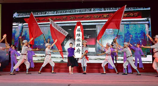 《红色薪传》剧目立足于黄冈这片红色土地,深耕于肥沃的将军文化土壤,体现的就是习近平总书记文艺座谈会讲话中提倡的“以人民为中心的创作导向”,是“讲好中国故事”的优秀校园作品。剧目从剧本到导演到表演,全部由我校音乐学院为主体的300多名师生承担,2015年5月首演。剧目坚持思想性、艺术性和观赏性有机统一,演出分序、红色火种、红土映日、战旗血红、漫山红遍、尾声,以《情系大别山》开幕,以《梦里常回大别山》结尾。