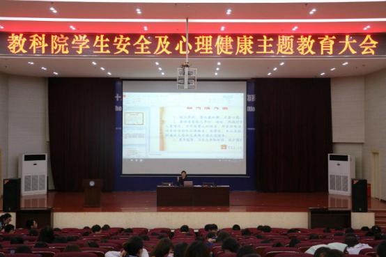 (通讯员:孙伟航)防微而杜渐,居安而思危。4月25日晚7点,教育科学与技术学院在多功能大楼学术交流中心召开了学生安全暨心理健康主题教育大会。教科院党总支副书记陈剑光老师、学生党支部书记尹志老师、团总支书记卢晓芬老师以及全院大一至大三约500名学生参加了会议。