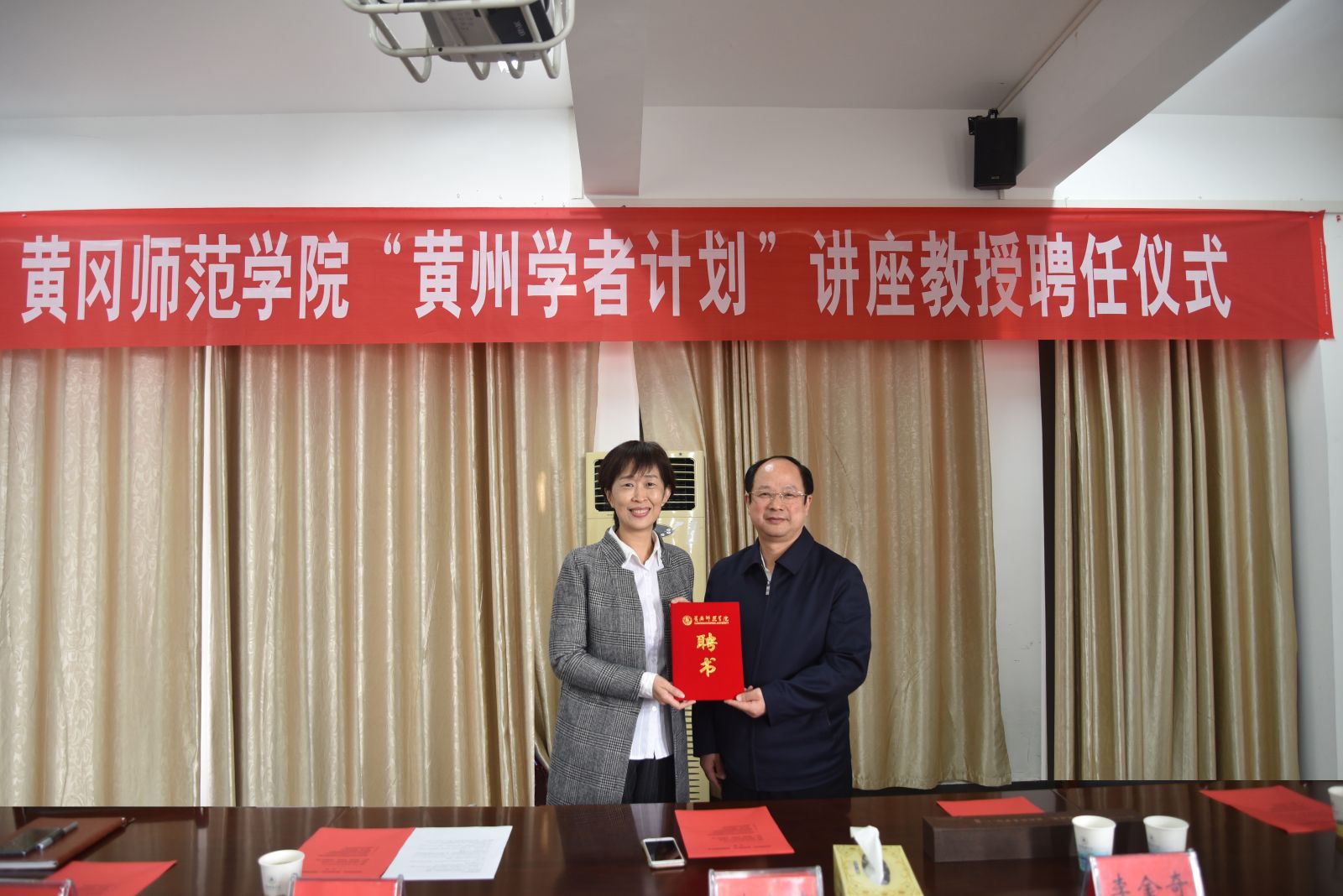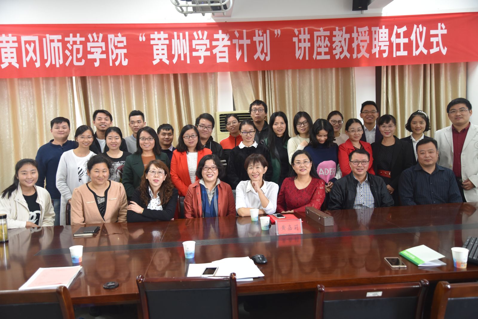 2017年10月26日上午,黄冈师范学院在教育科学与技术学院1316会议室举行了“黄州学者计划”聘任仪式,台湾师范大学黄嘉莉教授正式受聘教育科学与技术学院“黄州学者计划”讲座教授。校党委常委、组织部、统战部部长王锋教授主持,校党委副书记李金奇教授、校发规处鲍宏礼处长、人事处高少初处长、黄晓敏副处长、教育科学与技术学院教师、教育学重点学科成员、研究生参加聘任仪式。
