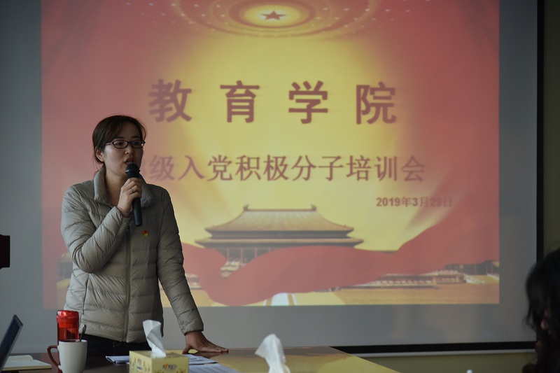 为不断加强入党积极分子的党性教育,使他们对党的性质、宗旨、任务、方针、党员义务权利有更加深入的认识,进一步提高其自身的思想水平和政治素质,329日晚于致远楼616会议室开展了入党积极分子培训会。出席此次培训会的有学院学生党支部书记邹焱萍老师、组织委员刘沁同学、支部干事,全体2019年上半年入党积极分子参加培训。