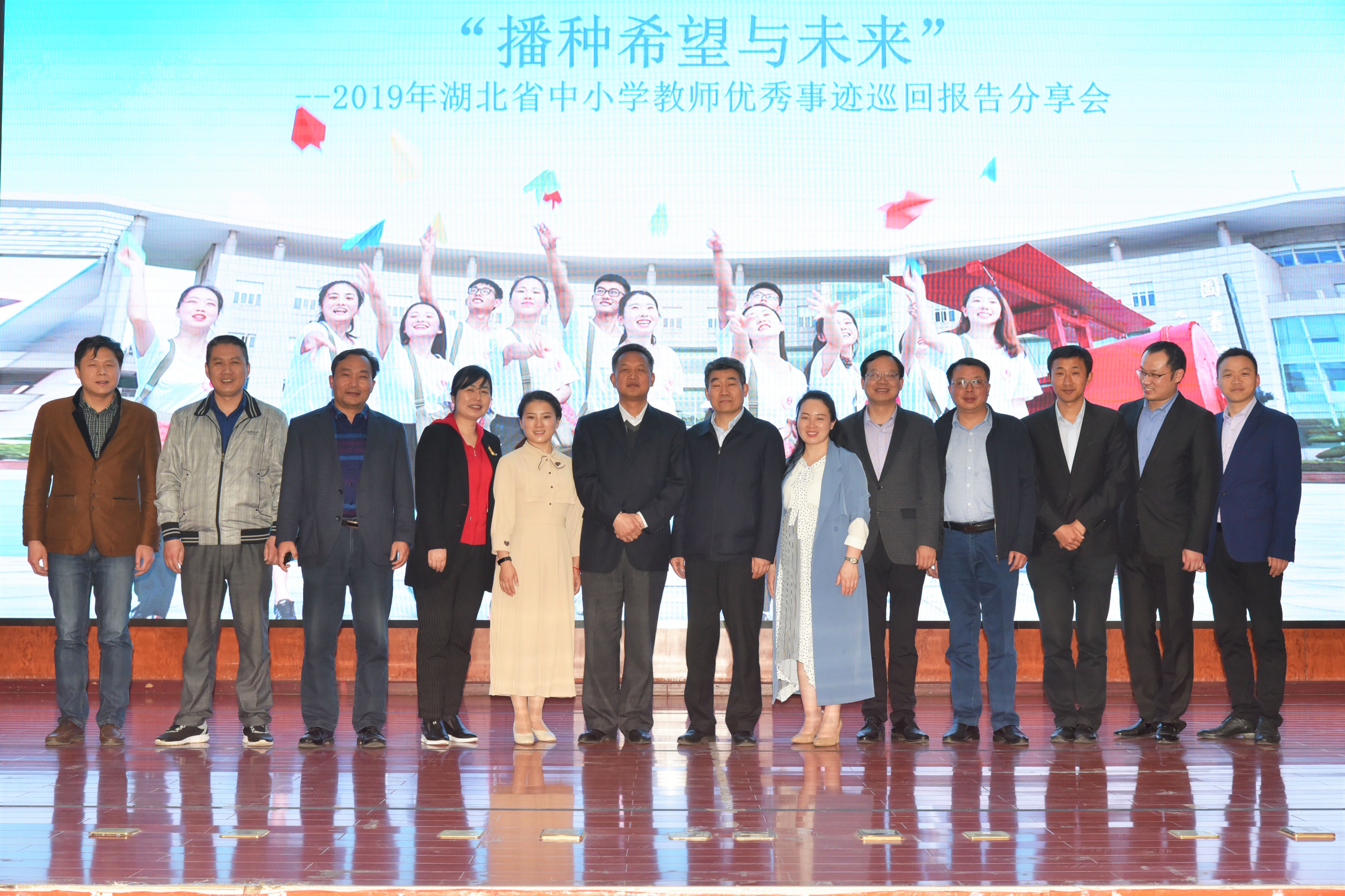 分享优秀事迹,共探教育未来。4月11日下午william威廉中文官网在厚德楼学术交流中心举行“播种希望与未来”2019年湖北省中小学教师优秀事迹报告分享会。学校副校长马志斌、教育学院党总支书记林永希、黄冈市教育局党组成员、副局长黄冶民、黄冈市教育局教师管理科科长雷中怀出席报告会,教育学院院长陈中文主持本次报告会。