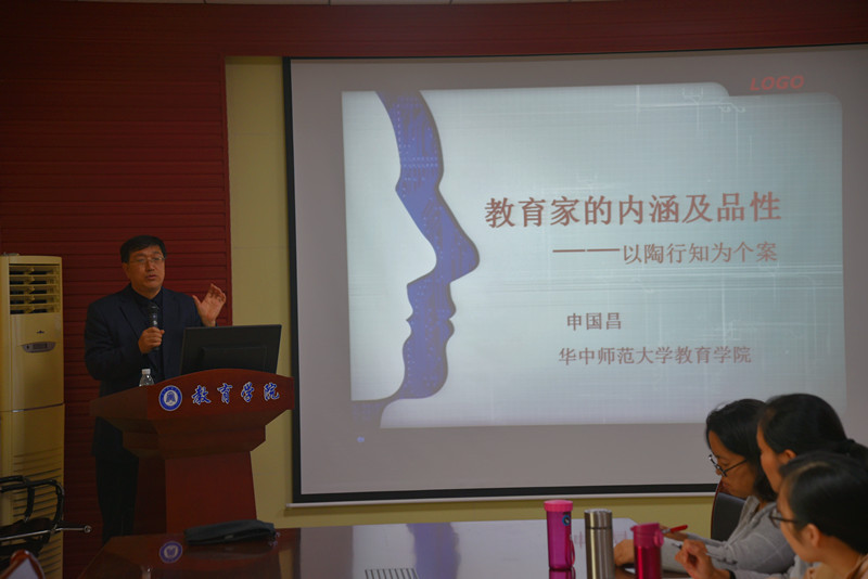 下午14:30,报告会在致远楼616会议室准时开始。申国昌教授作了题为《教育家的内涵及品性——以陶行知为个案》的专题报告,申教授主要从陶行知的生平事迹及教育实践;陶行知的教育理念和教育思想;从陶行知看教育家的内涵和品性三个方面进行阐述。整个报告会气氛热烈,申教授通过旁征博引,诙谐幽默的语言深深吸引着师生们,使整个报告会充斥着掌声,他渊博的学识和全新的视角折服了广大师生,师生们从中受益匪浅。学院党总支书记林永希对申教授的报告给予了高度的评价。