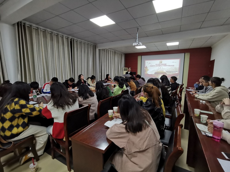 会上,学生党支部书记邹焱萍老师从中国特色社会主义制度和国家治理体系的“十三个显著优势”、“十三个坚持和完善”等方面,对十九届四中全会精神作了系统、深入的解读。要求全体党员、入党积极分子要进一步统一思想、提高认识,更好的用理论武装头脑、指导实践,自觉把思想和行动统一到党中央的重要决策部署上来。随后,全体参会人员一起学习了上述相关文件、并观看国庆70周年大型成就展网上展馆。