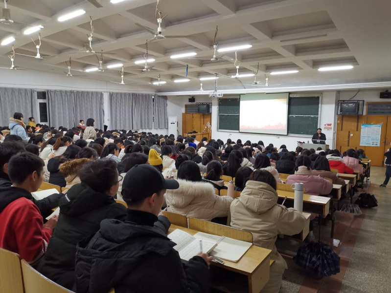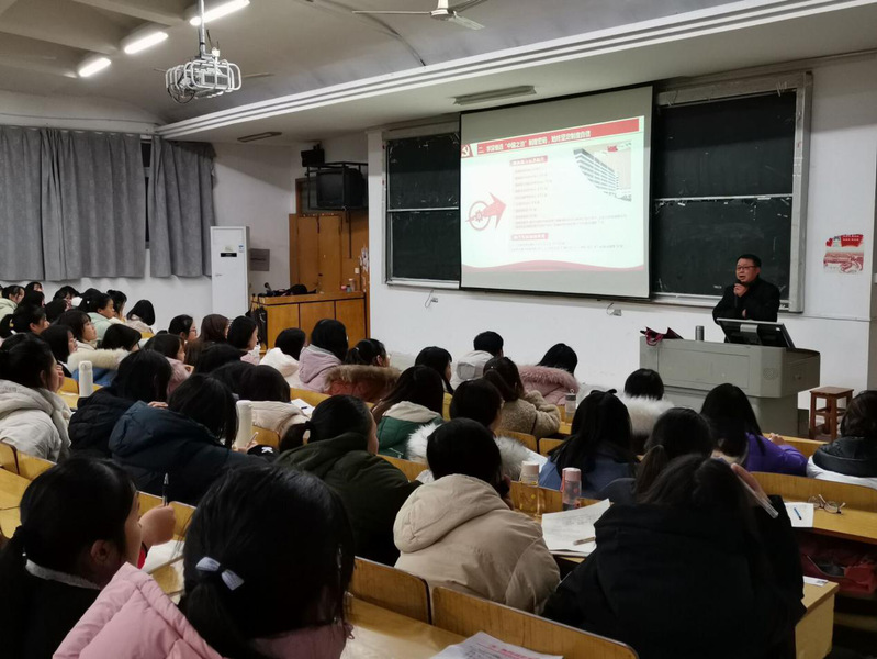 12月18日晚,教育学院学生党支部在博学楼A01举行2019年第四期入党积极分子培训会,学院党总支书记林永希教授为327名入党积极分子进行授课。会议由学生党支部书记邹焱萍老师主持。