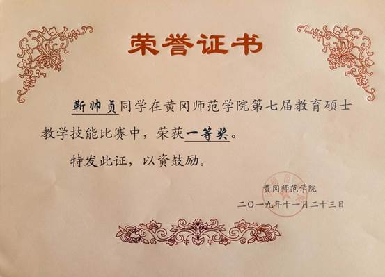 2019级研究生靳帅贞获第七届教育硕士教学技能比赛一等奖