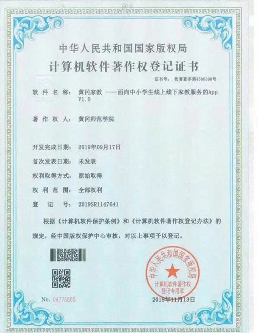 在科研成果方面:她曾主持黄冈师范学院大学生创新创业计划训练省级项目2项,发表论文2篇,获得软件著作权1项。