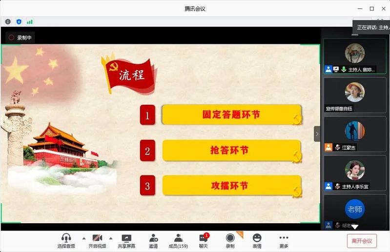 “学党史国史,守初心使命”党史国史知识挑战赛活动于7月13日-17日在线上面向全校学生开展。挑战赛分为初赛、复赛、决赛,全校共有960余名学生报名参加。初赛、复赛均在线上以问卷链接形式限时答题,经初赛、复赛比拼角逐出11名选手进入决赛。决赛采用线上实时答题的方式,共分为固定答题、抢答、攻擂三个环节,最后依据选手的总成绩排名决出一等奖1名、二等奖2名、三等奖3名、优秀奖5名。决赛共有160余名各院学生在线观赛,院学生党支部书记邹焱萍老师出席活动。邹老师在活动最后对获奖同学表示祝贺,并希望通过此次比赛,能让我校广大青年更加深入的学习了解党史国史,在学习党史国史中明志明理明德明责,坚定跟党走的决心,用责任担当唱响新时代青春之歌!