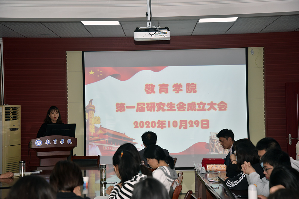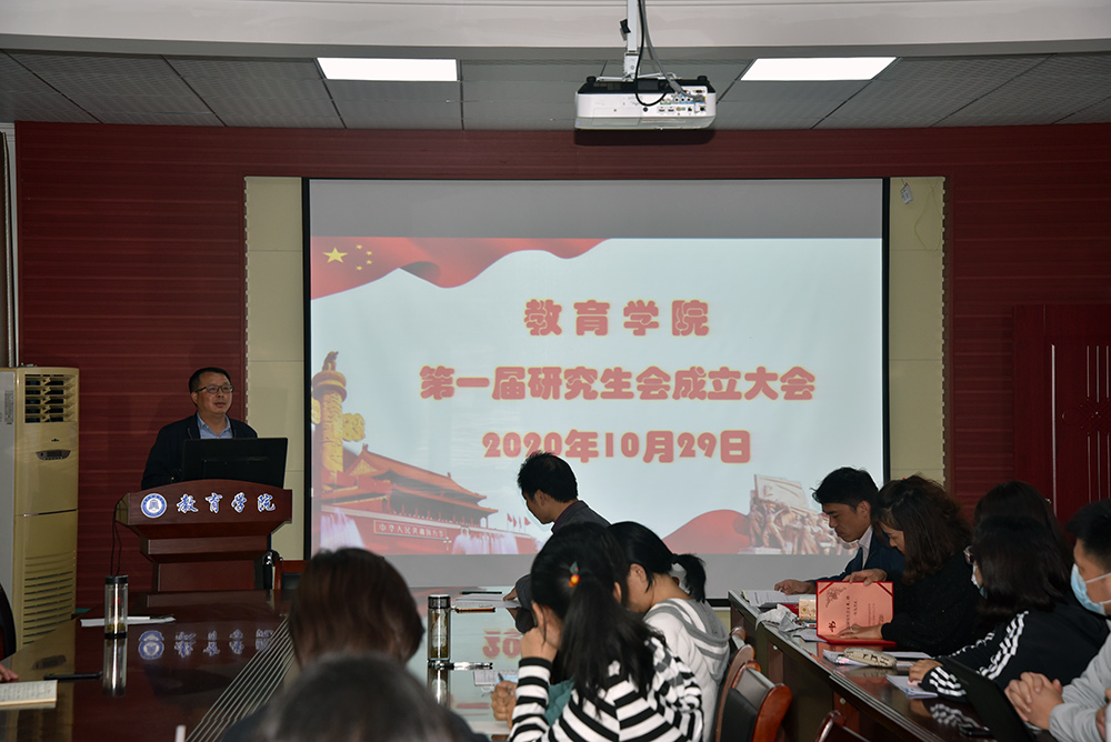 10月29日下午,我校教育学院第一届研究生会成立大会在致远楼616会议室召开,教育学院副院长黄克斌和院长助理程云博士共同主持了会议,教育学院党政领导班子成员、研究生教学秘书/辅导员、班主任及教育学院全体研究生出席了会议。
