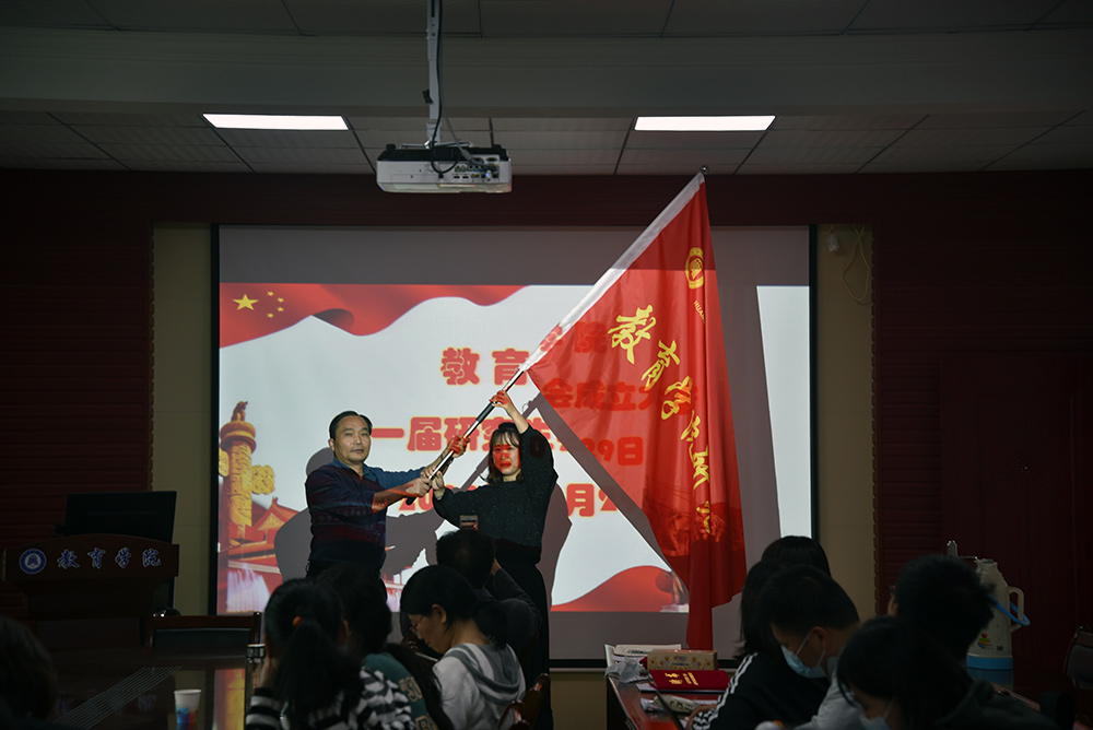 会上宣读了《教育学院研究生会章程》和《教育学院第一届研究生会成立大会的任命决定》,研究生会主席靖俊兰作为研究生代表发言,副院长徐小双、宋淑娟、黄克斌为研究生会成员颁发聘书,院长陈中文为研究生会授会旗。