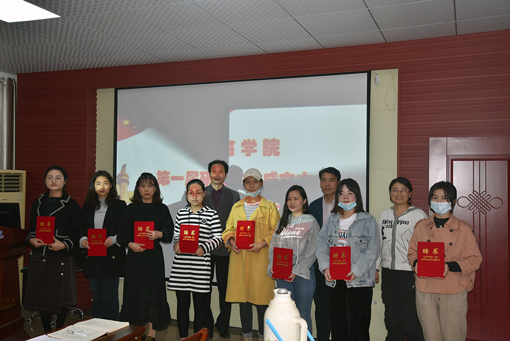 副院长徐小双、宋淑娟、黄克斌为研究生会成员颁发聘书