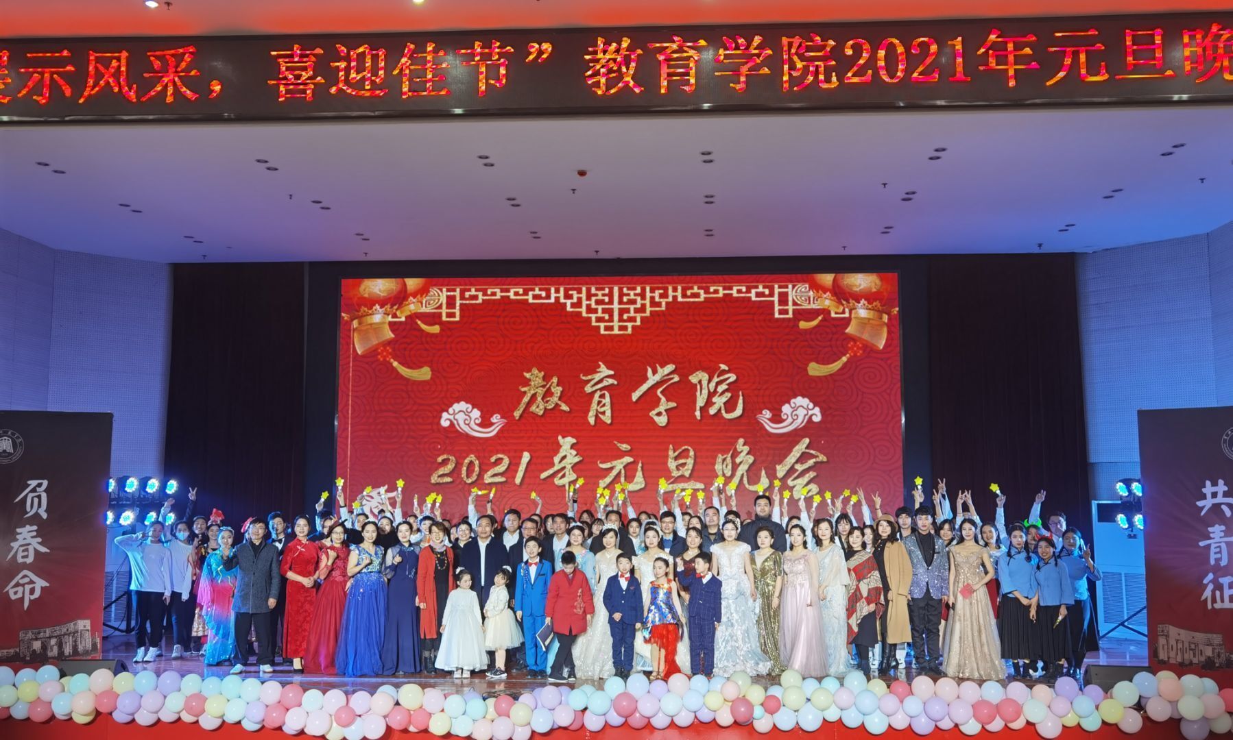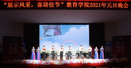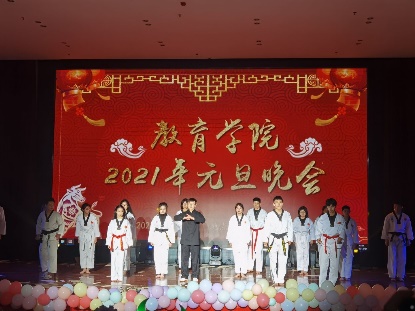 晚会上,16个节目精彩纷呈,演出人员全力以赴,为观众带来一场文艺盛宴。晚会以世纪舞团的《Era show》开场,舞者们用一段劲爆的舞蹈引燃全场,拉开了元旦晚会的序幕。晚会现场既有优美动听的《红玫瑰》,百转千回的《虞姬别霸王》,展现青春风采的《Wonderful U》,威武霸气的跆拳道《跆风》,铿锵有力的《满江红》,还有院领导老师们的激情朗诵《我们都是教院人》,彰显民族团结的《绽放》,其间穿插着有趣的情景剧《夏洛特烦恼》和《遍地英雄》,婀娜多姿的《归去来兮》、动感火热的爵士串烧《touch&给你看》,特色的配音秀《早安打工人》以及全院女教师充满魅丽的走秀《瘾》轮番上阵,晚会在院学生会全体成员的合唱《夜空中最亮的星》中落下帷幕。