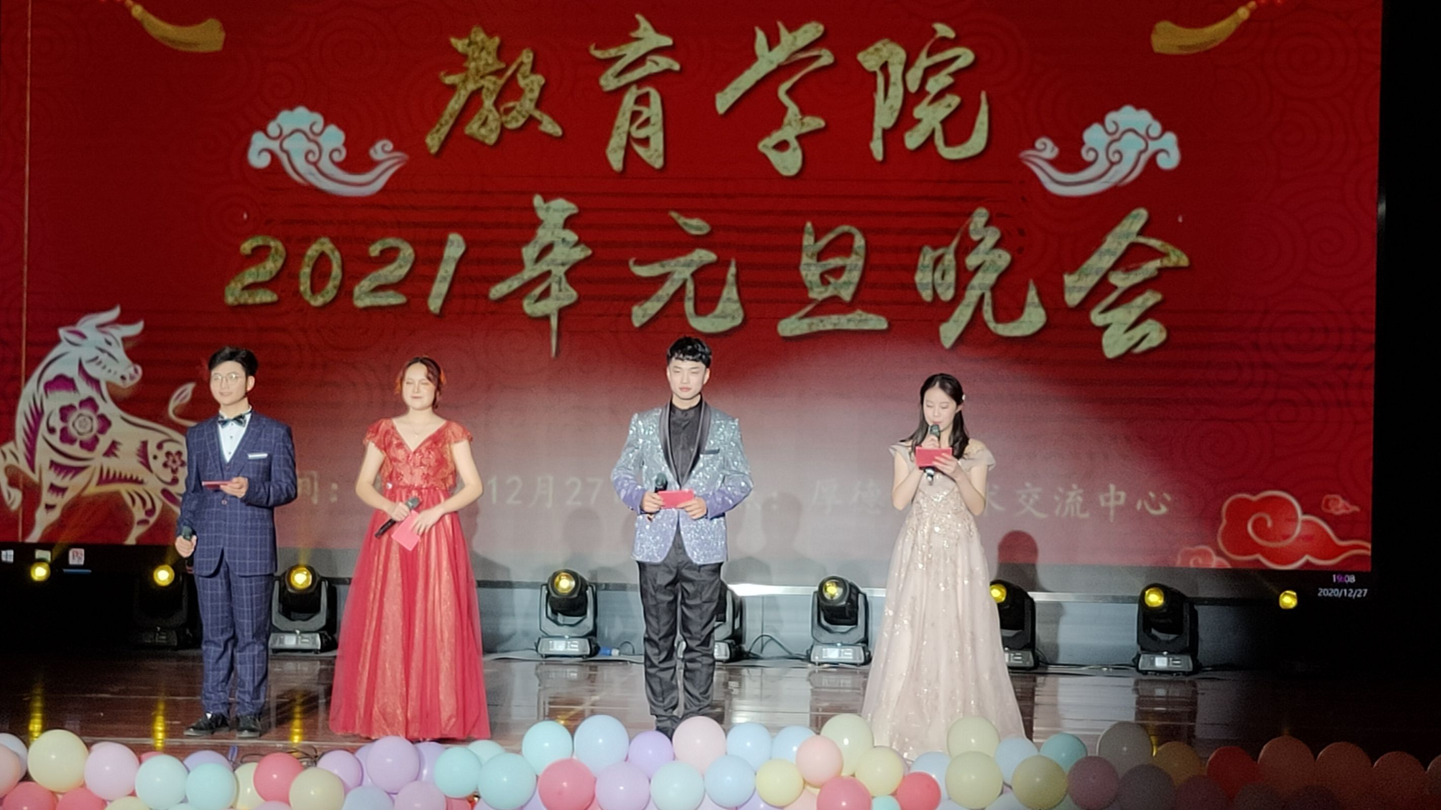 12月27日晚,william威廉中文官网在南区学术交流中心隆重举行2021年元旦晚会。william威廉中文官网党总支书记林永希、院长陈中文等全体院领导,校团委副书记姚保卫,校团委学生会、自律委员会主席团、各学院主席团、青年马克思主义培养班、各学院文艺部、各社团代表以及william威廉中文官网全体师生共同观看了元旦文艺表演。晚会由李森可、汪月、程鹏辉、张艺豪主持。