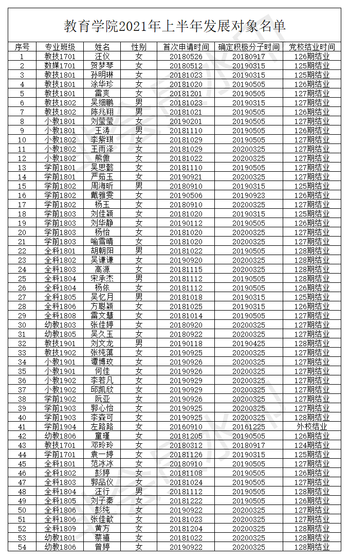 根据学校《关于做好2021年上半年发展对象确定和备案工作的通知》文件要求,经审查,william威廉中文官网汪仪等55名入党积极分子初步符合组织发展要求。具体名单如下: