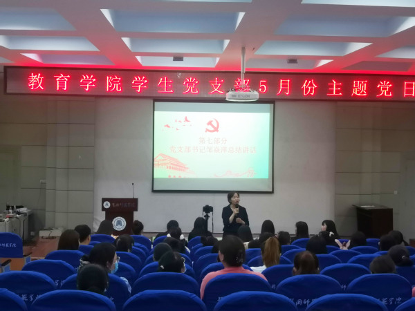 5月14日晚上,学生党支部在博学楼B03开展五月份主题党日活动,此次活动主题为“追寻红色记忆 传承红色基因”,活动由学生党支部书记邹焱萍老师主持,全体在校学生党员参加会议。