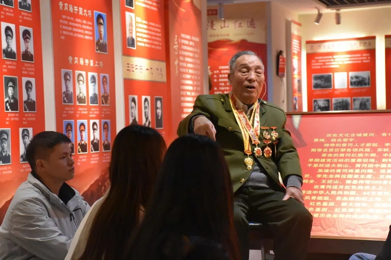 在黄冈师范学院红色资源展示馆里,同学们聆听陈老的故事,如同走过历史沧桑的脉络,那段被岁月打磨失色的记忆又变得浓墨重彩。