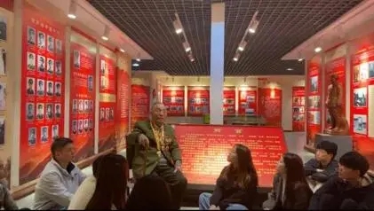 陈志忠老人在学校红色资源展示馆给青年学生讲述党史