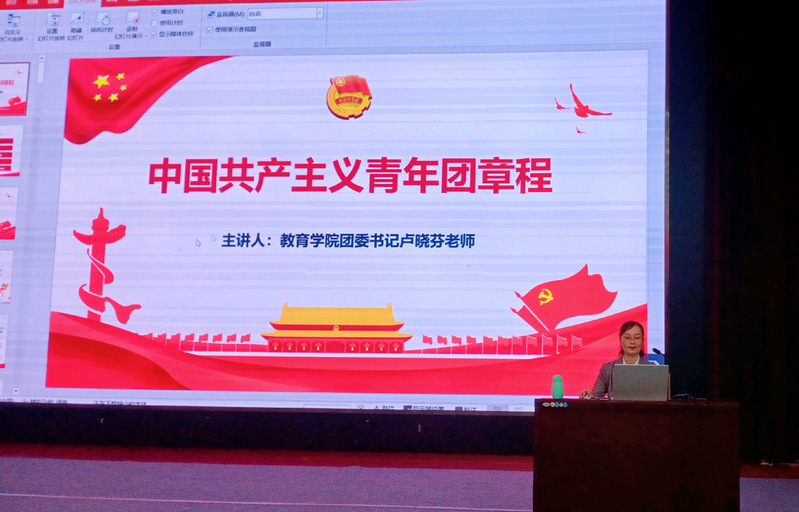 9日上午,教育学院团委书记卢晓芬老师以“中国共产主义青年团章”和“四史”教育为主题展开集中学习。课上卢老师为大家讲解了中国共产主义青年团章程的主要内容,深刻阐述了中国共产主义青年团要完成新时代的基本任务,必须毫不动摇坚持中国特色社会主义群团发展道路,把握政治性这一灵魂,聚焦先进性这一重要着力点,立足群众性这一根本特点,深化团的改革,全面从严治团,不断提高团的建设科学化水平。要发扬优良传统和作风,生动活泼、富于创造性地开展工作,把共青团建设成为团结教育青年的坚强核心。紧接着卢老师以“四史”教育为主题展开课程第二阶段学习,向同学们讲述了什么是“四史”、开展“四史”教育的必要性。