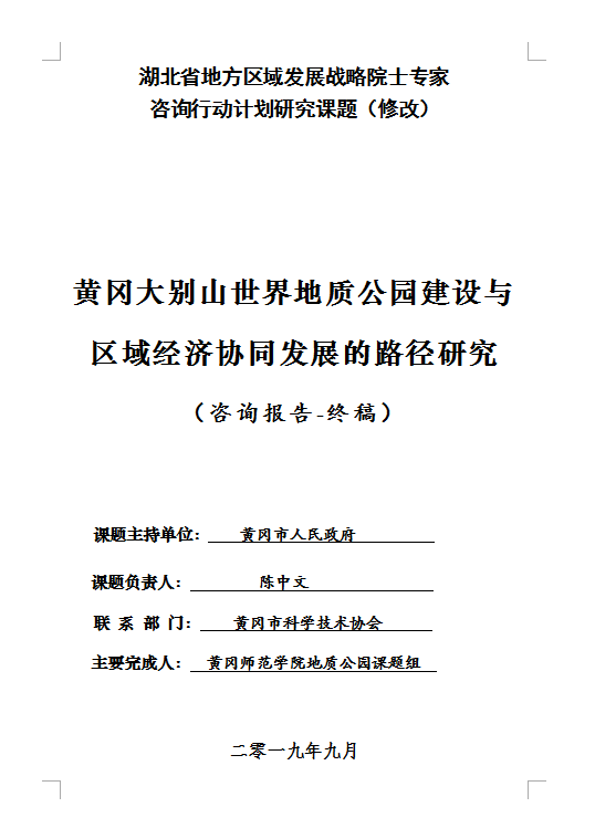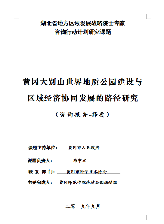 《黄冈大别山世界地质公园建设与区域经济协同发展的路径研究》咨询报告终稿、择要 | ||