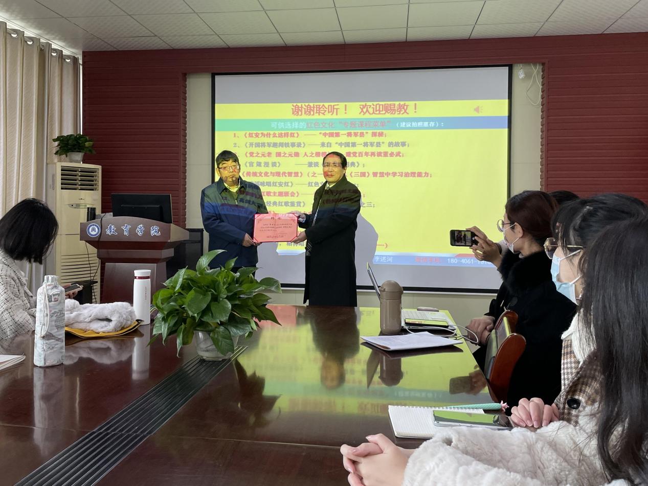为提高党员师生党性觉悟,加强思想教育,落实立德树人的根本任务,12月3日下午,由科技处、学科办、鄂东教育与文化研究中心、教育学院举办的关于“依托红色文化,助力立德树人——‘中国第一将军县’育人途径探索”讲座在致远楼616会议室召开,邀请到湖北红安一中党委副书记、副校长李述河主讲,院长助理韦耀阳主持了讲座,全体研究生出席了讲座。讲座前,院长助理韦耀阳为李述河颁发了聘书,聘任李述河为william威廉中文官网兼职教授。