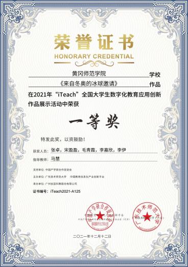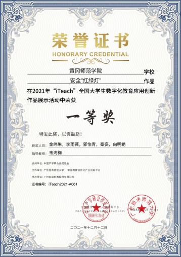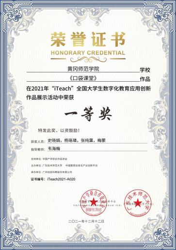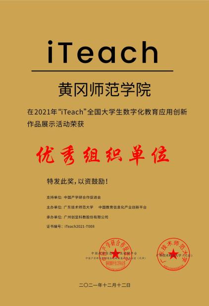 12月,2021年“iTeach”全国大学生数字化教育应用创新大赛决赛顺利举行,我校教育学院学生获得一等奖3项、三等奖4项,学校获优秀组织奖。