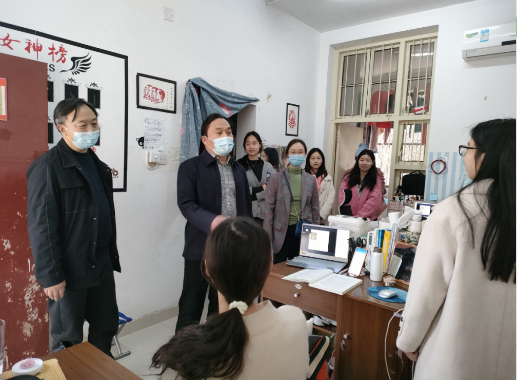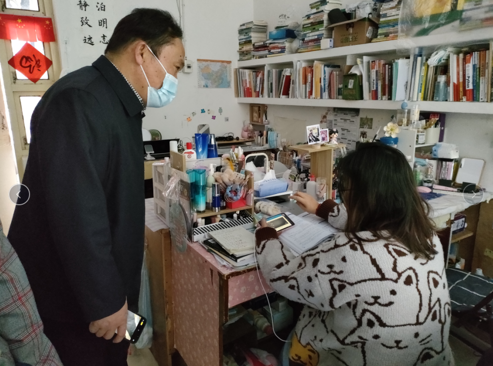 为切实保障人才培养质量和疫情常态化教学正常秩序,深入了解学生线上学习状态,3月11日,学院党总支书记程晓鹏、院长陈中文、党总支副书记王永胜及辅导员老师深入学生宿舍对学生起床到课、线上课堂状态、宿舍安全及卫生等情况进行了全面检查。