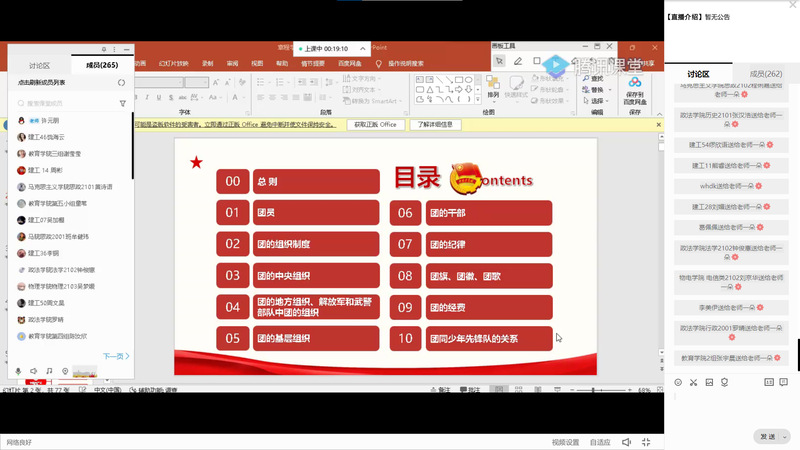首先,卢晓芬老师为大家讲解了中国共青年团章程的内容,介绍了共青年团的性质、在新时代的基本任务以及共青团员的基本要求,着重介绍了团中央最新发布的关于从严治团的文件。