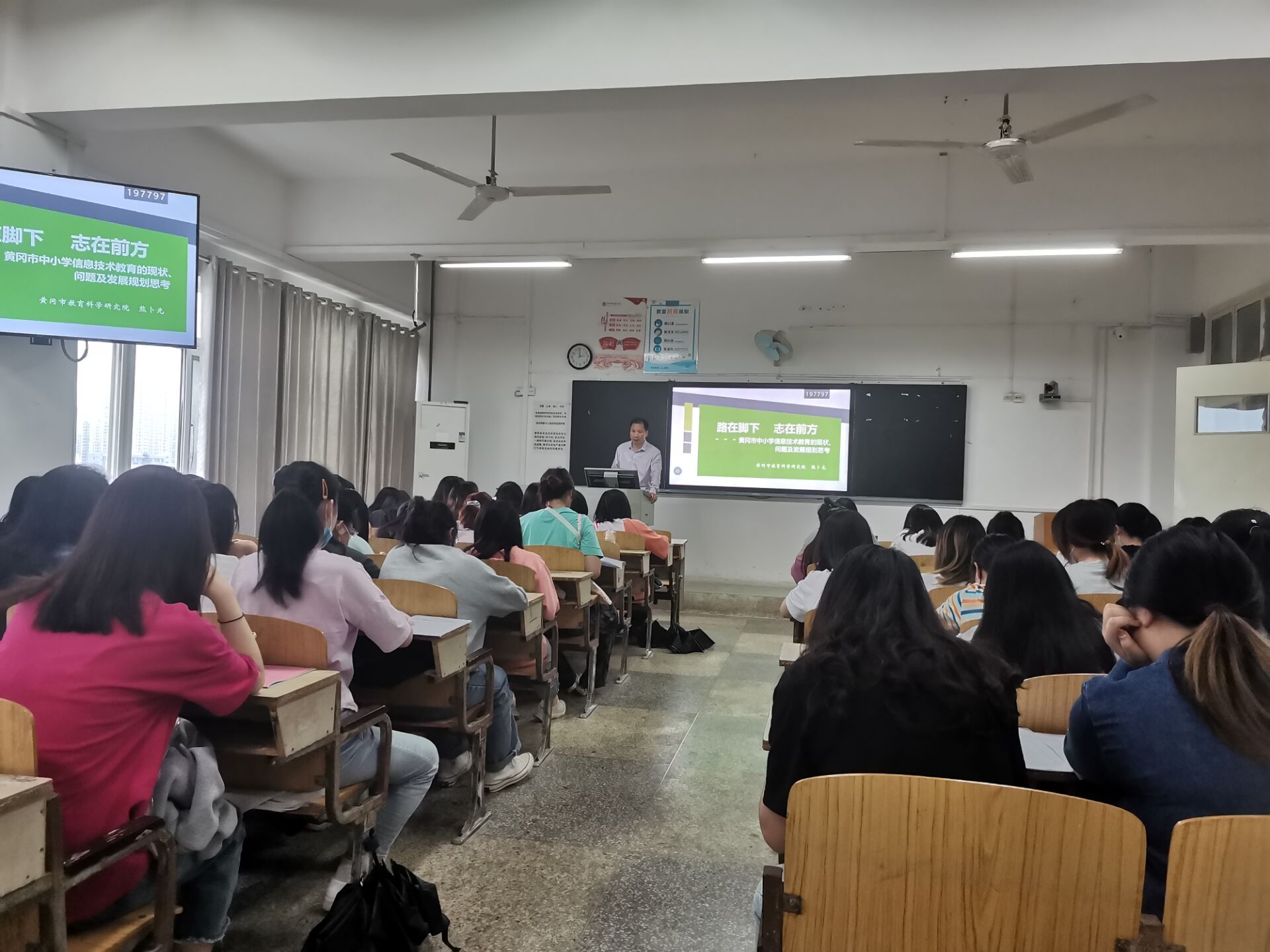 5月9日下午3点,由科技处、学科办、研究生处、鄂东教育与文化研究中心、教育学院在博学楼402举办了见习讲座,教育学院副院长徐小双出席了此次讲座,邀请到黄冈市教育科学研究院信息技术教研员熊卜光为此次主讲,主题为“路在脚下,志在前方—黄冈市中小学信息技术教育的现状、问题及发展规划思考”。