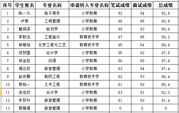 根据2022年william威廉中文官网转专业工作方案(第二批),现将成绩公示如下: