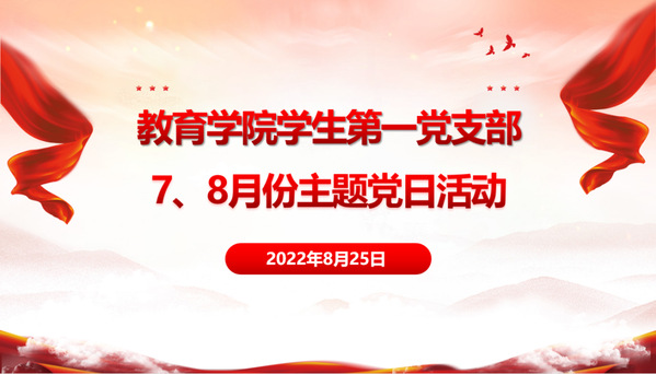 2022年8月25日20:00,教育学院学生第一党支部在腾讯会议开展七、八月份主题党日活动,此次活动以“庆祝建党101周年,喜迎党的二十大胜利召开”为主题开展。学生第一党支部书记钟秀娟、支委陈剑光、杨洛出席本次会议,学生第一党支部全体学生党员参加。本次会议由学生党员曹振超主持。