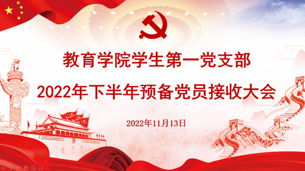 11月13日晚20:00,教育学院学生第一党支部在腾讯会议召开2022年下半年预备党员接收大会。教育学院党委副书记王永胜、学生第三党支部书记邹焱萍、学生第一党支部书记钟秀娟、支委陈剑光及杨洛出席本次会议,学生第一党支部学生党员及5名发展对象参加会议。本次会议由学生第三党支部书记邹焱萍主持。