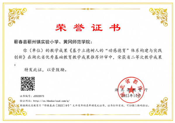 本网讯 近日,省教育厅公布2022年湖北省优秀基础教育教学成果名单,我校3项成果上榜,其中一等奖2项,二等奖1项。