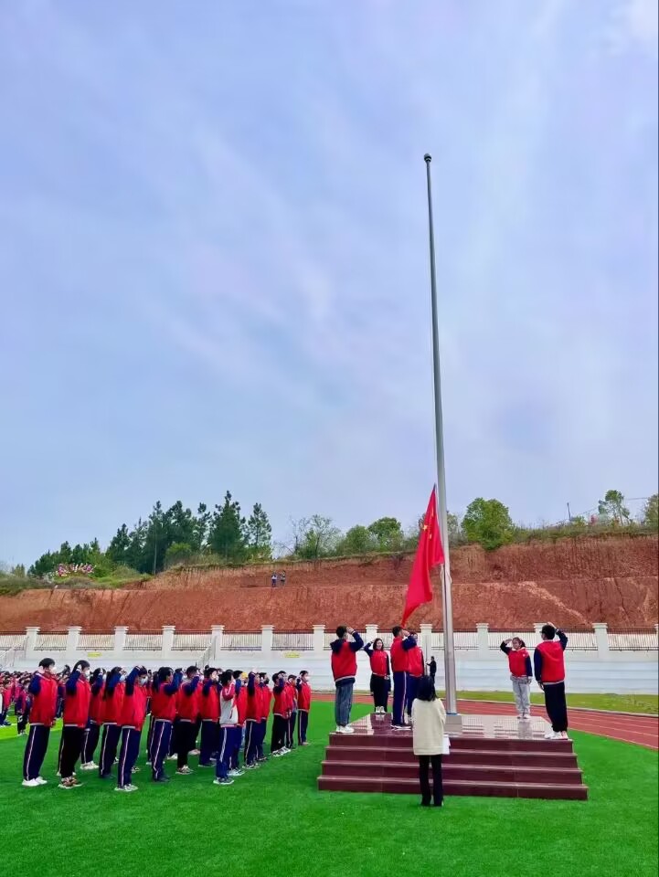 3月27日上午,岳飞小学在操场举行升国旗仪式,全体师生到操场,行注目礼,升国旗、唱国歌,培养学生爱国主义精神。