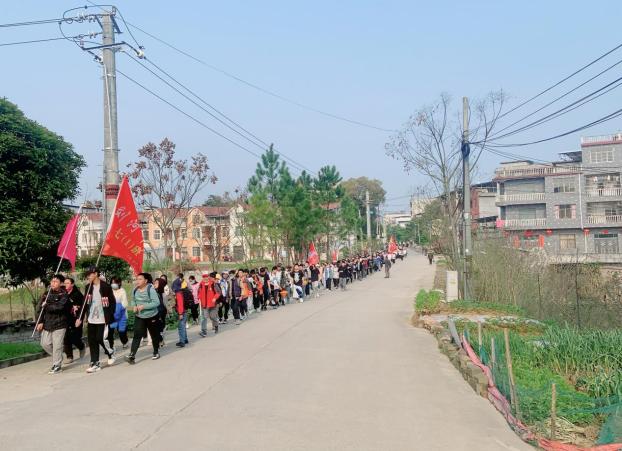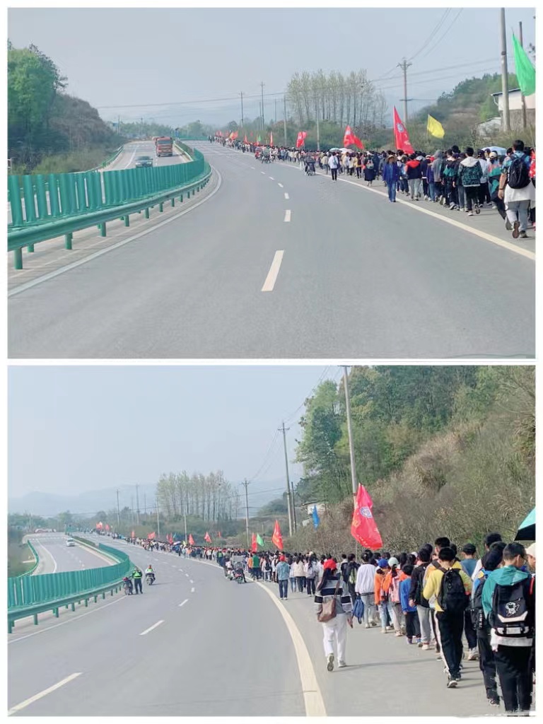 读万卷书,行万里路。为了提高学生综合素质,培养学生吃苦耐劳的精神和坚强意志,展示学生精神风貌和学校素质教育成果,刘河中学于2023年3月31日举办“走进家乡美景,励志美好青春”远足拉练社会实践活动。我校赴刘河中学实习的三名研究生赵琪、张心和方晶参加了此次活动,与同学们共同完成了20公里远足活动。此次活动的宗旨在于让同学们在团结与协作中历练自己,在顽强与拼搏中磨练自己,通过坚持之花成就自己、完善自己。没有比脚更长的路,没有比人更高的山,道虽远,行将必至,未来的路虽然艰辛,但只要坚持、团结、拼搏,就定能成功。