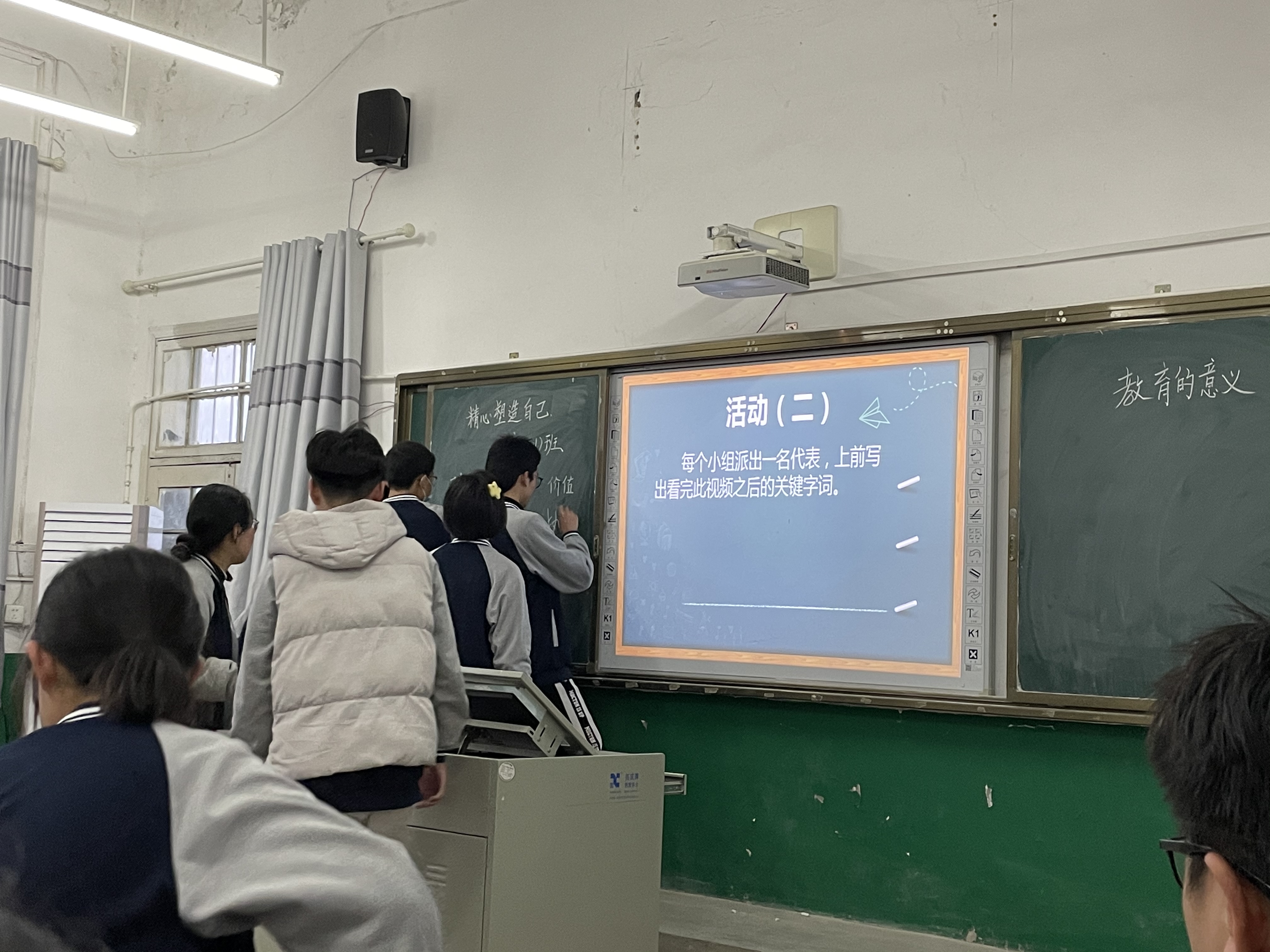 2023年3月27日,付冰欣、吴芬两位实习生与高一年级班主任们一同观摩了高一(21)班的班会课,本次示范课主题为“精心塑造自己”,授课班主任是高一(21)班数学老师詹书霞。本次班会课精彩非凡,与以往班会课不同之处在于其具有强烈的数学逻辑与层次性,整节课由“认识自己——不负此生——教育的意义——塑造自我”,以活动作为链接,环环相扣,层层递进。本次班会课做到了情境育人、活动育人、积极向上的育人效果,达到了德育无痕的教育境界。在诸多班主任交流讨论后,年级主任方主任提出以下两点建议:(1)在班会课中优秀学生的示范作用可以更加凸显;(2)塑造自我可以针对学生在学习成长中的问题、疑惑而展开,以提高班会课的时效性。整场班会课听下来,受益匪浅。