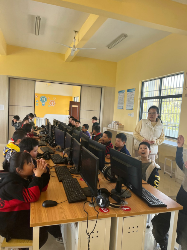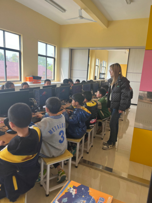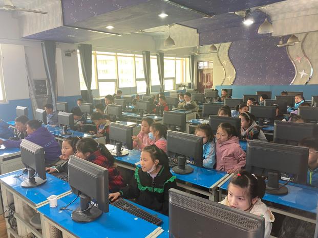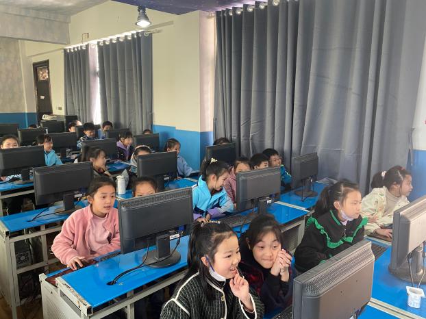 王倩和熊维云投入正常课堂教学,为三四年级学生讲解计算机的发展简史,区分计算机硬件和软件,及利用WPS制作自己的课程表。