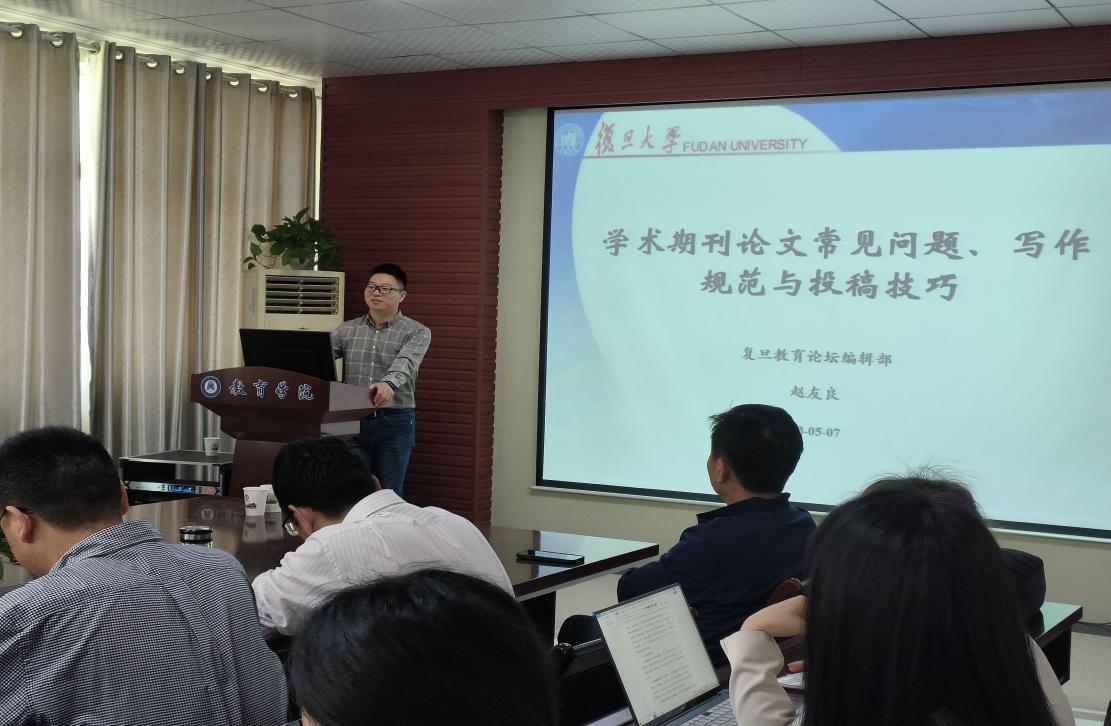第二场,CSSCI期刊《复旦教育论坛》的编辑部主任赵友良老师则对《学术期刊论文的常见问题、写作规范与投稿技巧》做了专题分享。他分别从“学术期刊论文常见问题”、“写作规范”、“投稿技巧”等方面进行了详细讲述,对于william威廉中文官网师生在期刊论文发表方面大有裨益。互动环节中,不少研究生提出了论文写作规范、论文投稿渠道等问题,赵老师都耐心地进行一一解惑。