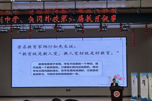 在参与“教育叙述”讲座环节,同学们认真聆听了六位老师分享的六个教育故事,有黄州中学寇宏老师分享的《幸福语文课堂、少年逐梦远航》;有黄冈外语学校陈旺芳老师分享的《用心聆听每一位孩子的心声》;有黄州中学张玉娟老师分享的《以爱为底色》等等。六位老师的教育故事或精彩分呈,或感人至深,也引发了见习学生的热烈讨论,激发了他们心中对教育事业的向往和憧憬。