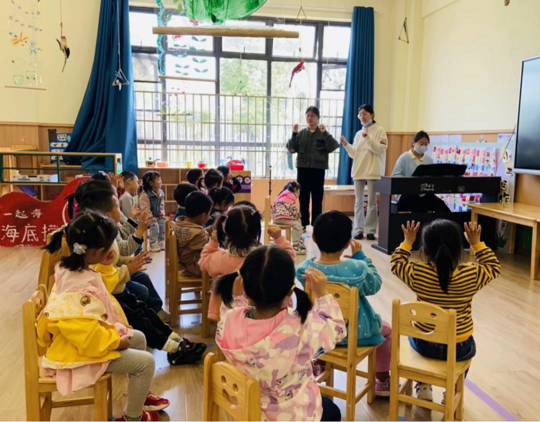 3.教学环节在教学环节中,同学们积极协助教师维持纪律,适当指导幼儿,如带领小朋友们进行一些律动活动,进行歌唱活动等。