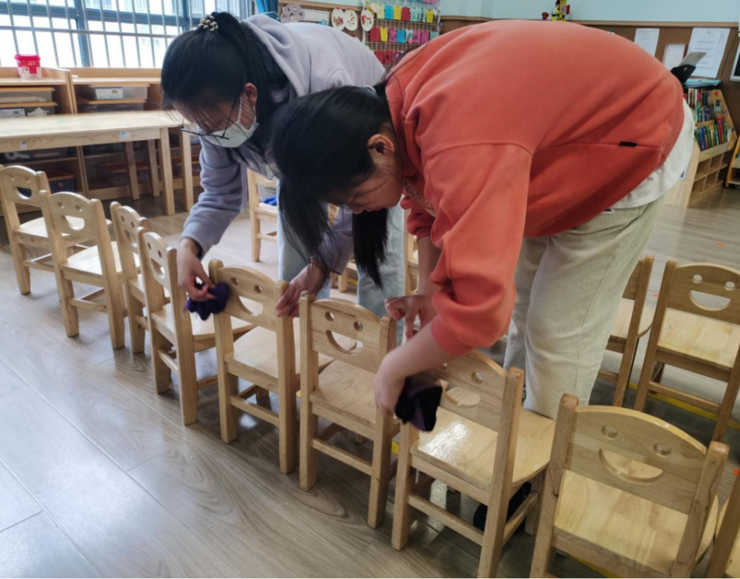 在指导老师的帮助与引导下,同学们尝试参与班级与区域的卫生、教室与楼梯环境的创设工作,在幼儿园组织的大型亲子趣跑活动中,各位同学担当积极配合老师们的安排,尽职尽