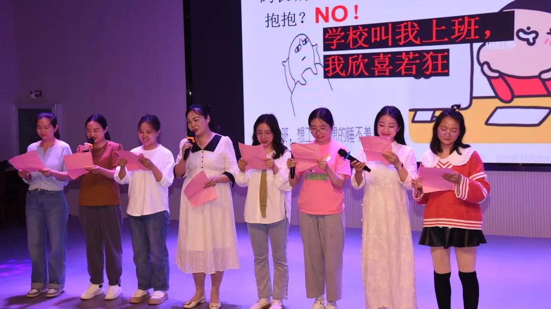 岳飞小学崭新的报告厅舞台流光溢彩,美轮美奂。校长聂红杰向正年轻和曾经年轻的同事们送上祝福,并以青春之名祝愿大家在一起成长和变好。