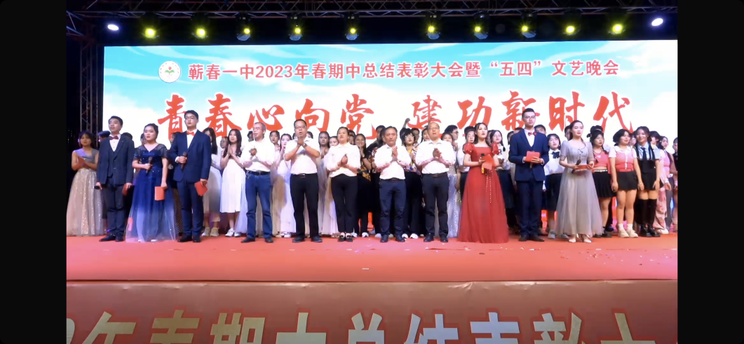 2023年5月8日晚,蕲春一中举行2023年春期中总结表彰大会暨“五四”文艺晚会。吴芬、付冰欣分别作为党员和入党积极分子踊跃参与本次晚会的筹办工作。晚会中节目异彩纷呈、高潮迭起,蕲春一中学子们展示了无限的青春热血,他们的青春梦想向我们展示了信仰的力量,他们趁着青春而启航向我们展示了青春的担当。当晚,有学生家长、历届校友等七千余人参与了本场晚会的线上直播活动,为一中学子们喝彩。本场晚会不仅丰富了学生的课余生活,激发了学生的学习热情,而且向社会呈现出新时代青年人的青春面貌,展现出新一代学子们“青春心向党,建功新时代”决心。