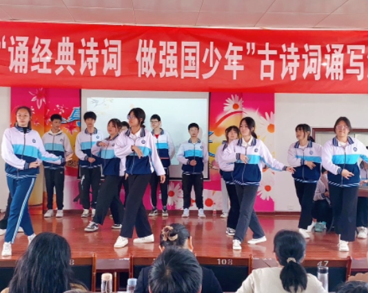为了弘扬中华优秀文化,打造精彩人生底色,激发学生热爱古诗词的兴趣,蕲春县刘河中学于2023年4月26日开展了古诗词诵写演比赛。中国优秀传统文化博大精深,古诗词是其是不可或缺的一部分,是中华文化的精华。我们要在日常的学习、工作、生活中,发挥古诗词的作用,将古诗词文化传承下去。刘河中学这次举办的“诵写演”活动,让古诗词的魅力点亮了我们的心灯,希望同学们在今后的学习生活中坚持学习和积累古诗词,做“腹有诗书气自华”的青少年。