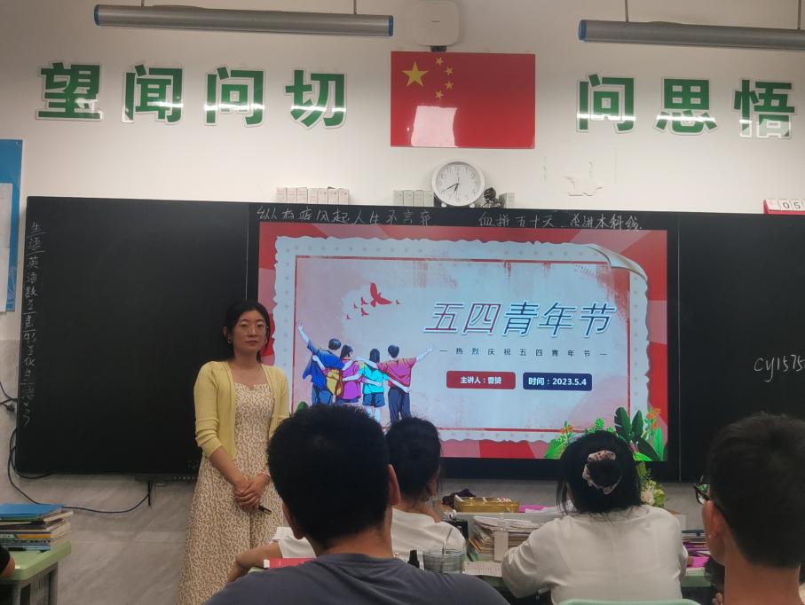 2023年5月4日,劳动节假期结束,恰逢青年节,实习生曹赟为实习班级讲授了一堂“五四”班会。在班会课上,与高三(2)班的同学们一起回顾了五四运动的过程,了解五四运动在历史上的重要地位,引导学生坚定自己的理想,并为之全力以赴。这对当代高中生来说具有重要的教育意义,他们正值青春,正是活力四射,激情澎湃的年纪,这个年纪的他们具有强大的可塑性,在人生路上他们还有很长的路要走,趁五四青年节这个时机,为他们讲授这样一堂班会课,为他们前进的道路打好地基。这堂班会课也给学生们带来了很大的启发,同学们纷纷表示,他们一定不能虚度光阴,积极上进,做有为青年!
