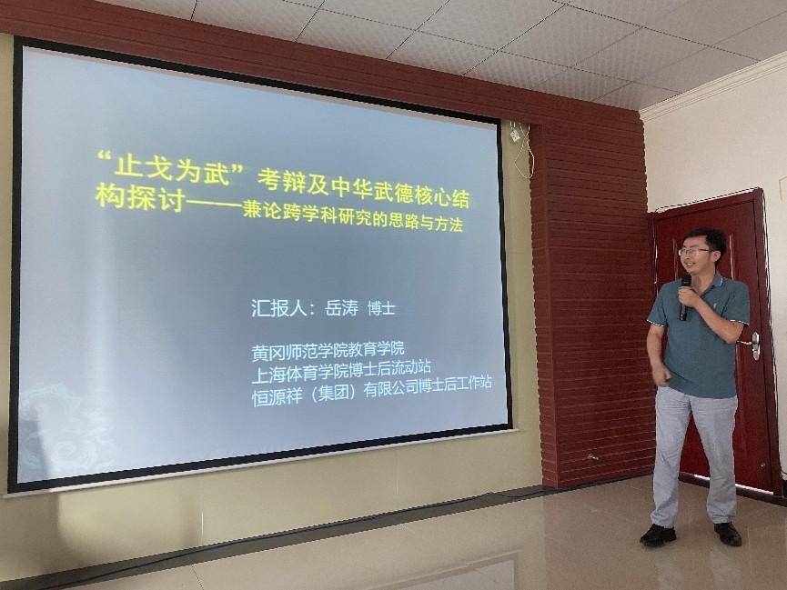 然后,正在上海体育大学从事博士后研究的岳涛老师作了题为《“止戈为武”考辩及中华武德核心结构探讨--兼谈跨学科研究的思路与方法》的学术报告。该报告横跨语言学、体育学、文化学等多领域,展现了跨学科研究的风格与方法,帮助大家开拓了学科视野,领略了学科交叉融合方法的魅力。