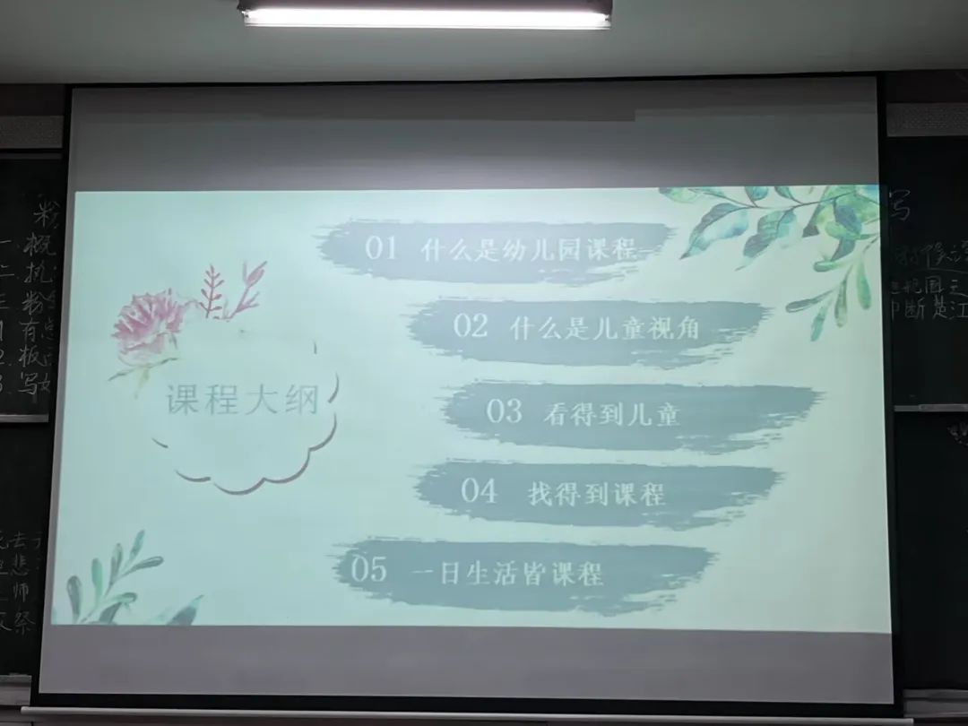 本次讲座的主题是“看得到儿童,找得到课程——儿童视角的幼儿园课程实施路径的探索”。程琳老师首先分享自己在大学的经历感受以及从事一线教师的教学经验,提到从儿童视角切入课程的方式对自己的实践工作非常有帮助,也更加认同教师这个职业。然后从“什么是幼儿园课程”“什么是儿童视角”两个方面引入本次主题,程琳老师通过详细的介绍,提升了同学们对幼师职业的了解,期间播放“35太难了”视频,从真实的角度近距离观察儿童,帮助大家更加了解儿童视角。接着,程琳老师给大家分享一本名为《儿童的100种语言》的书,并介绍近期春晓幼儿园开展的主题活动,提出教室应该是幼儿实践活动的场地,并表示遇到突发情况,同学们要发挥主人翁意识,要有责任感,有担当。最后,程琳老师总结此次讲座内容,再次强调从儿童视角开展课程的重要性,提倡同学们在未来从教中能够靠近儿童,贴近童心。