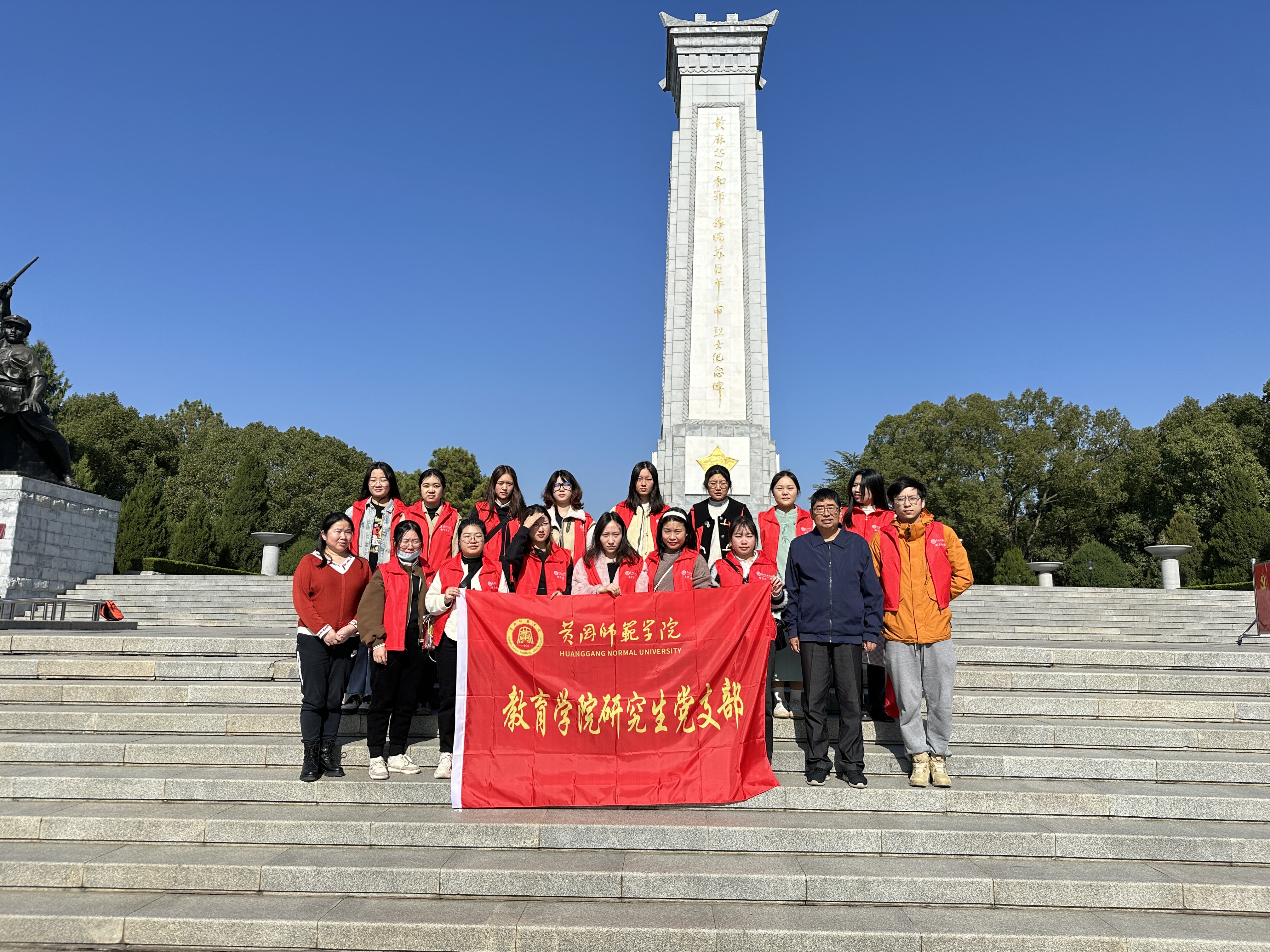随后教育学院研究生党支部师生党员一行到达了红安县黄麻起义纪念碑前,缅怀先烈,重温革命精神,进一步加强党性修养,坚定理想信念,推动党的思想建设、组织建设、制度建设和作风建设。