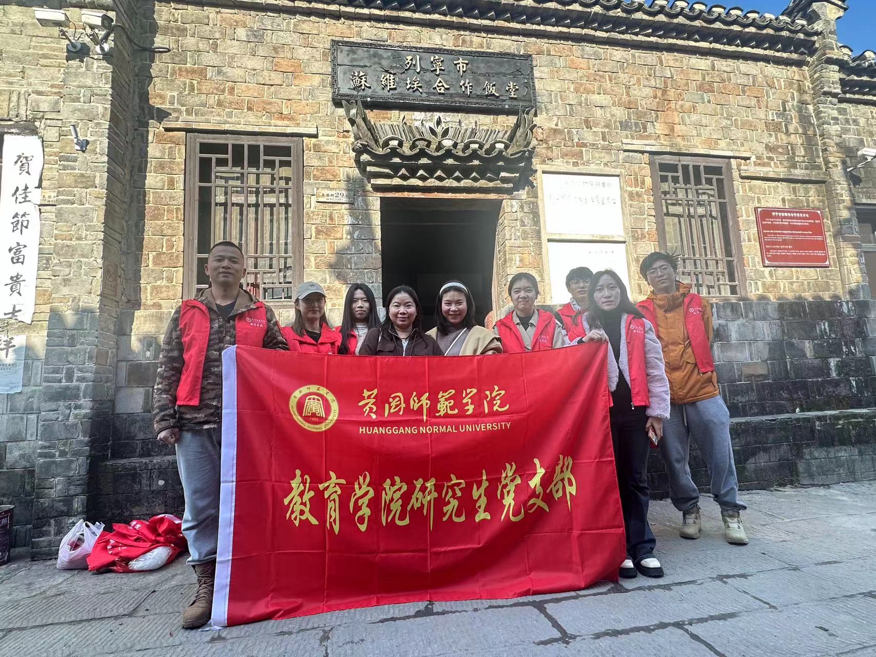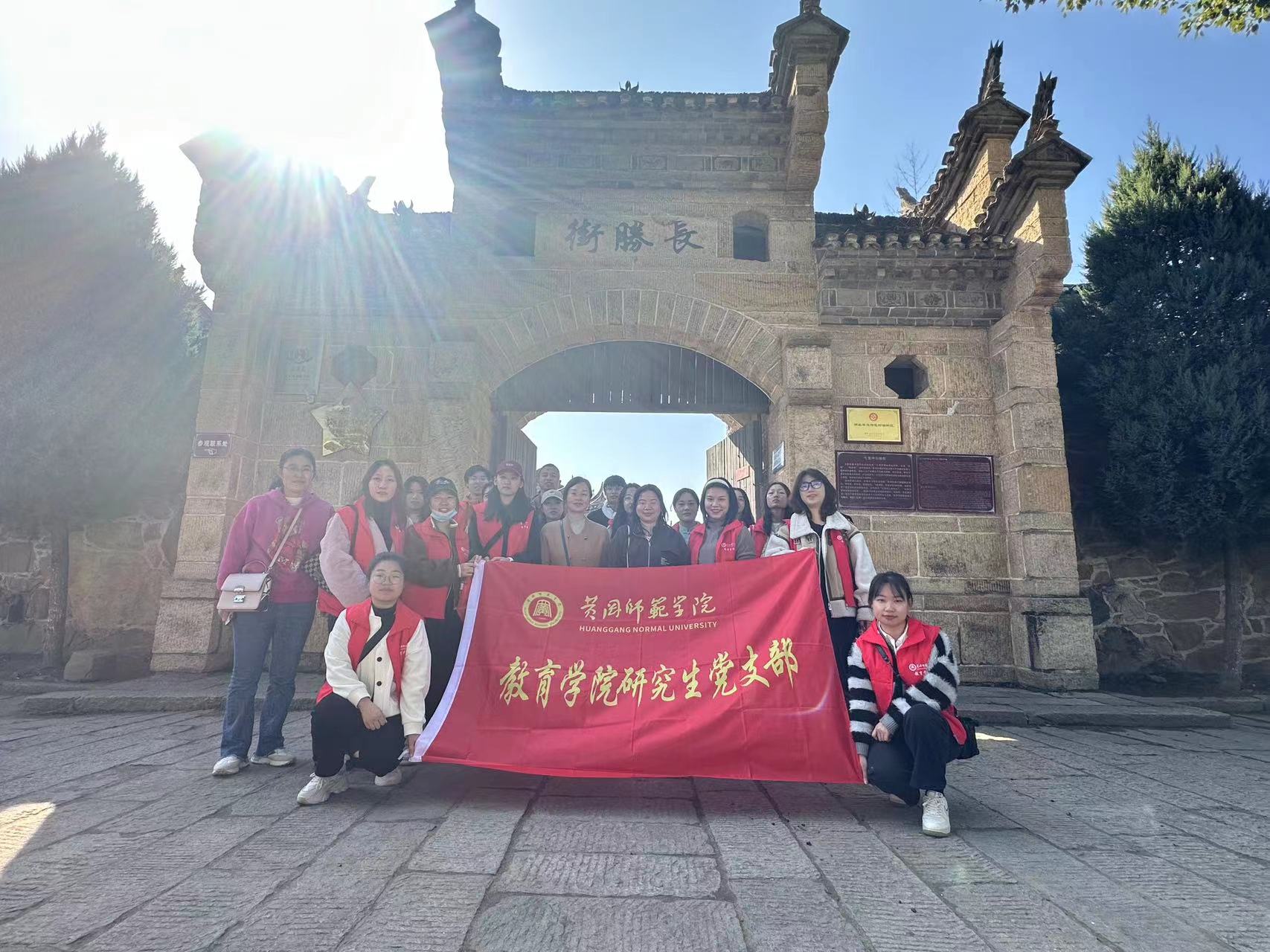2023年11月19日,教育学院研究生党支部党员师生到湖北红安县七里坪镇开展红色教育实践活动,教育学院副书记徐丹老师、副院长韦耀阳教授、辅导员卢晓芬老师、小学教育专业专任教师王艳老师参加了此次活动。此次活动旨在通过丰富多彩的形式,让党员和群众深入了解党的历史,加强党性修养,坚定理想信念,进一步推动党的思想建设、组织建设、制度建设和作风建设。