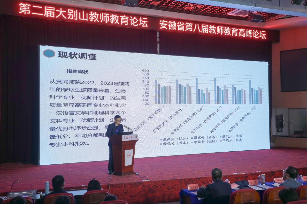 12月9日上午8点,在安庆师范大学(龙山校区)图书馆东报告厅举行了隆重的开幕式。在接下来的主论坛中,包括“长江学者”特聘教授阮成武、北京师范大学教师教育研究中心宋萑教授在内的7位知名专家学者先后作了主旨报告。在此环节中,李威老师代表教育学院团队作了题为《地方高校“优师计划”发展现状、问题与改进策略---基于鄂豫皖三省五校的调研》的专题报告,报告得到与会专家学者的良好反响。