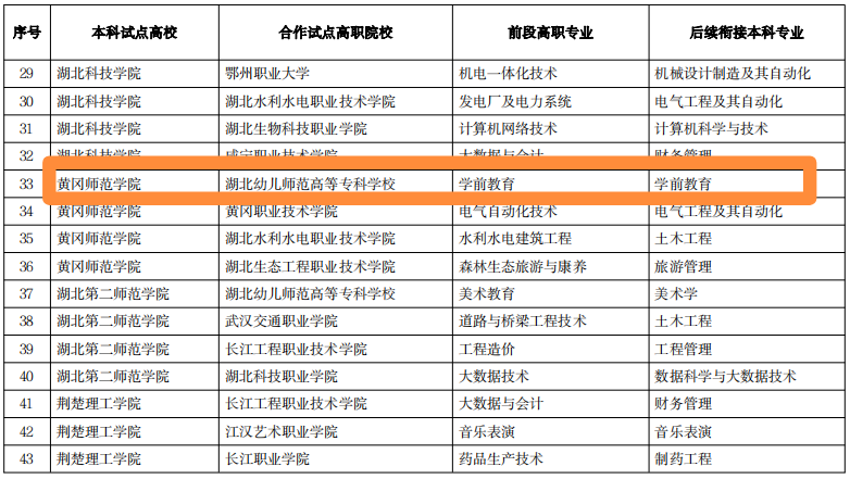 根据《省教育厅关于开展新一轮普通本科高校与高职院校联合培养技术技能型人才试点工作的通知》(鄂教高函〔2024〕8号),经高职院校自愿申报、本科高校遴选并联合高职院校申请,省教育厅审核同意william威廉中文官网学前教育专业和湖北省幼儿师范高等专科学校开展联合培养技术技能型人才试点。